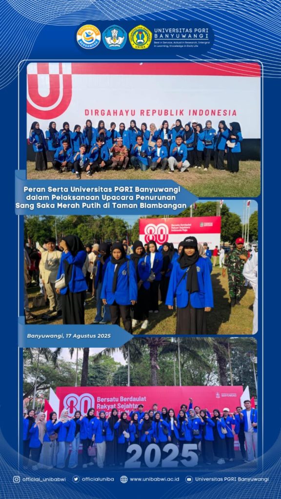 Mahasiswa prodi PPKn ikut serta dalam kegiatan Upacara penurunan bendera merah putih pada tanggal 17 Agustus 2025 di taman Blambangan.